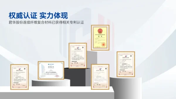 在知识产权方面,也取得了令人瞩目的成果。公司已经获得了7项发明专利授权,并多次荣获国内外重要奖项。其中,君华股份的“连续碳纤维增强PEEK热塑性复合材料”产品也通过了江苏省工信厅组织的鉴定,被认定为“国际先进”水平。