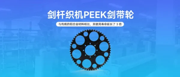 剑杆织机通常具有高运动频率,这对剑带轮的强度提出了极高的要求。若强度不足,剑带轮容易变形,进而影响与剑带的啮合,甚至可能导致停机事故。PEEK材料本身的比强度就是铝合金的8倍,而我们的PEEK5600CF30产品中添加有30%的碳纤维,进一步提升了其强度。这使得剑带轮在高频率的运动中也能保持稳定,可靠地带动剑带实现纬纱引入。