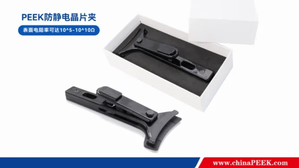 PEEK晶片夹具备出色的防静电特性,其表面电阻率可达10^5-10^10Ω,夹头部分更是高达10^7-10^8Ω,有效防止了瞬间静电放电对硅晶片的破坏,为晶片提供了全方位的保护。